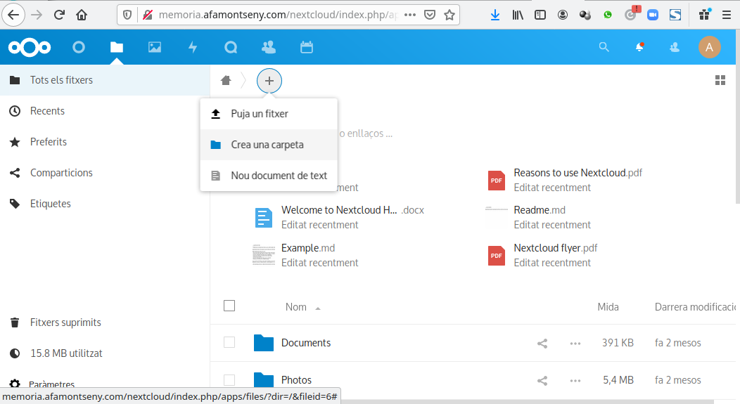 Nextcloud Fitxers Exemple